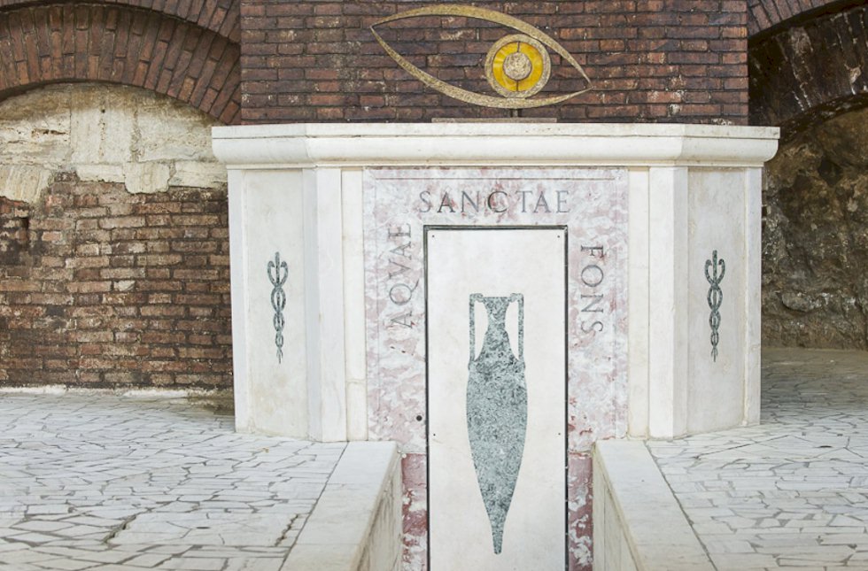 L'antica vocazione curativa delle Terme di Chianciano è confermata dal ritrovamento di reperti di Età Etrusco-Romana, legati al culto delle acque: statuette sacre e riproduzioni votive di fegati in pietra e bronzo. Il territorio fu a lungo conteso tra i Ghibellini di Siena e i Guelfi di Orvieto, sostenuti da Firenze. La prima valorizzazione delle acque termali avvenne solo nel ‘600, quando la situazione politica si stabilizzò sotto il granducato di Toscana. Il resto è storia recente: tra il 1915 e il 1929 vennero realizzate le prime strutture. La sorgente dell'Acqua Santa affiora da una grotta rocciosa sovrastata da una collina. Dal serbatoio di raccolta, l'acqua passa in una tubazione articolata in 11 raccordi ed altrettante "cannelle" per la mescita che avviene in una grande sala. Il parco, che si estende su una superficie di oltre 7 ettari e che si articola in sentieri nel verde, fra aiuole fiorite ed alberi secolari, comprende anche il Salone Nervi, il Bar con la Sala Ottagonale, un'area ballo e per musica da ascolto all'aperto, un viale dedicato allo shopping, le Terme Sensoriali e la Sala Fellini. All'ingresso del parco sono collocati, sui bordi di una fontana, due simbolici pavoni in bronzo del XVIII secolo.